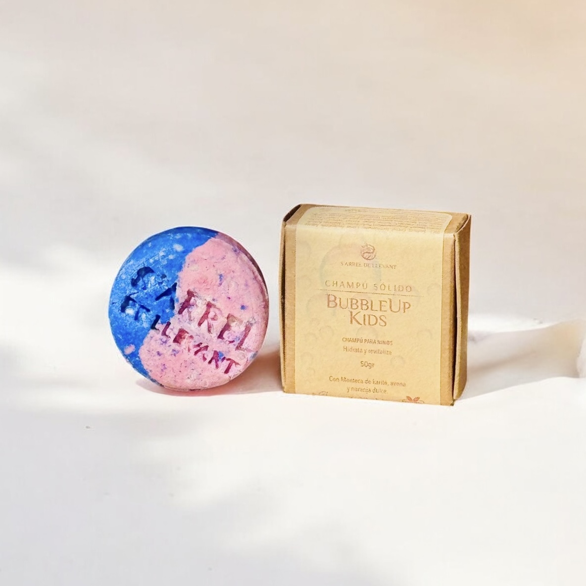 Bubble Up KIDS es un champú sólido especialmente formulado para niños y niñas. Limpia con suavidad, hidrata sin apelmazar y cuida el cuero cabelludo sensible con ingredientes naturales y respetuosos. Un champú divertido, práctico y seguro para las pequeñas aventuras del día a día.