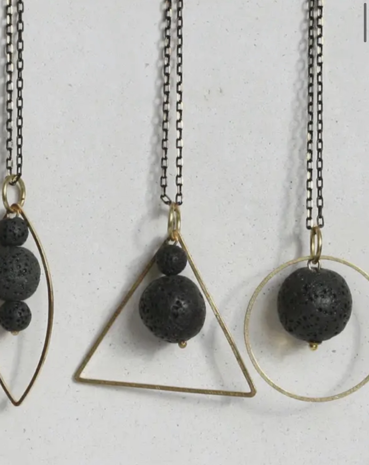 cuentas de lava natural y un colgante triángulo de latón,