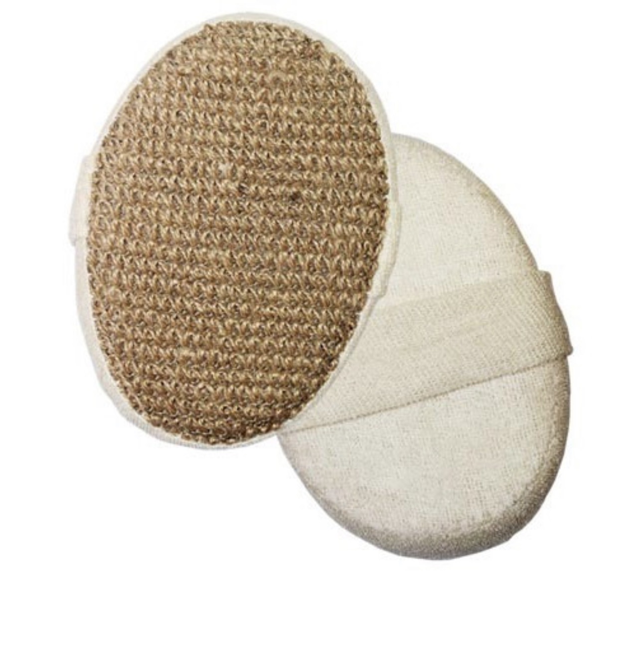 Esponja exfoliante fabricada con fibras vegetales naturales — ramio, lufa y crin — ideal para limpiar y pulir suavemente la piel.