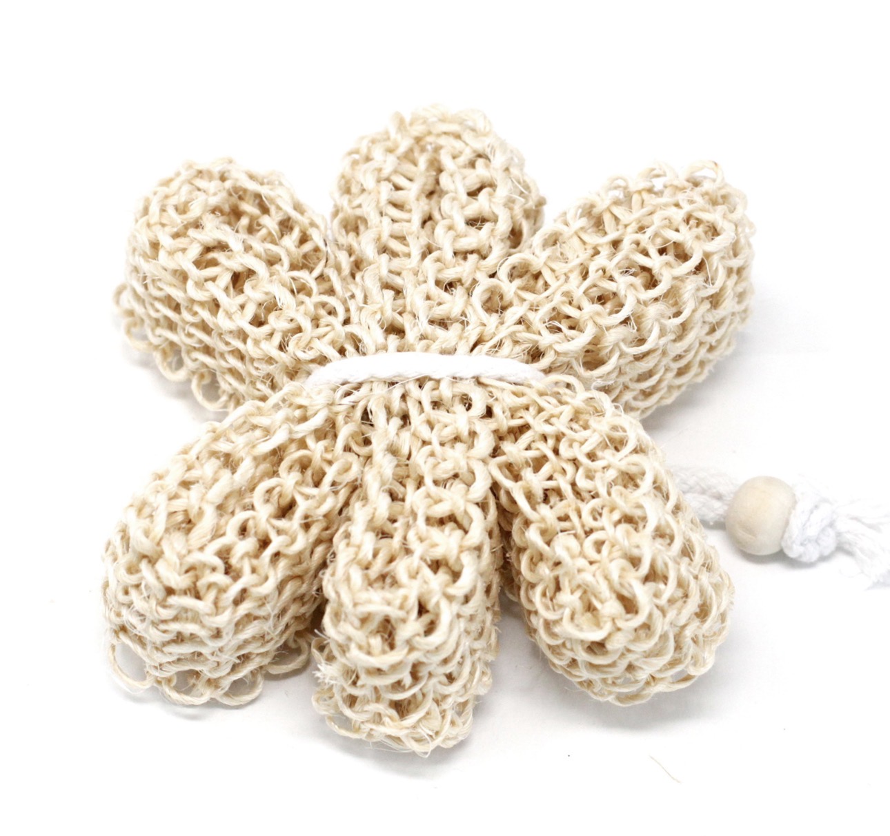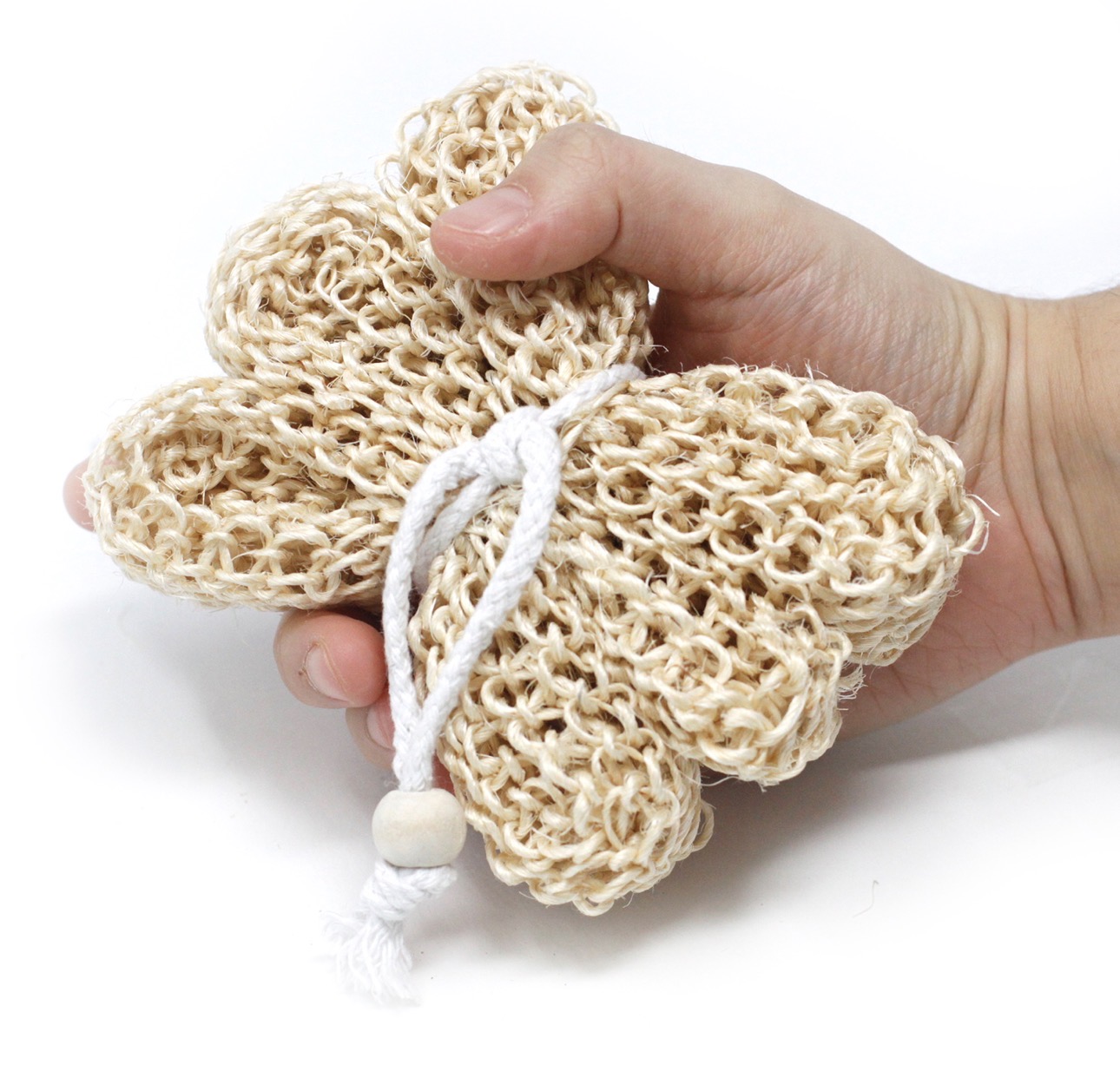 Esponja exfoliante en forma de estrella, fabricada con fibras naturales de sisal.