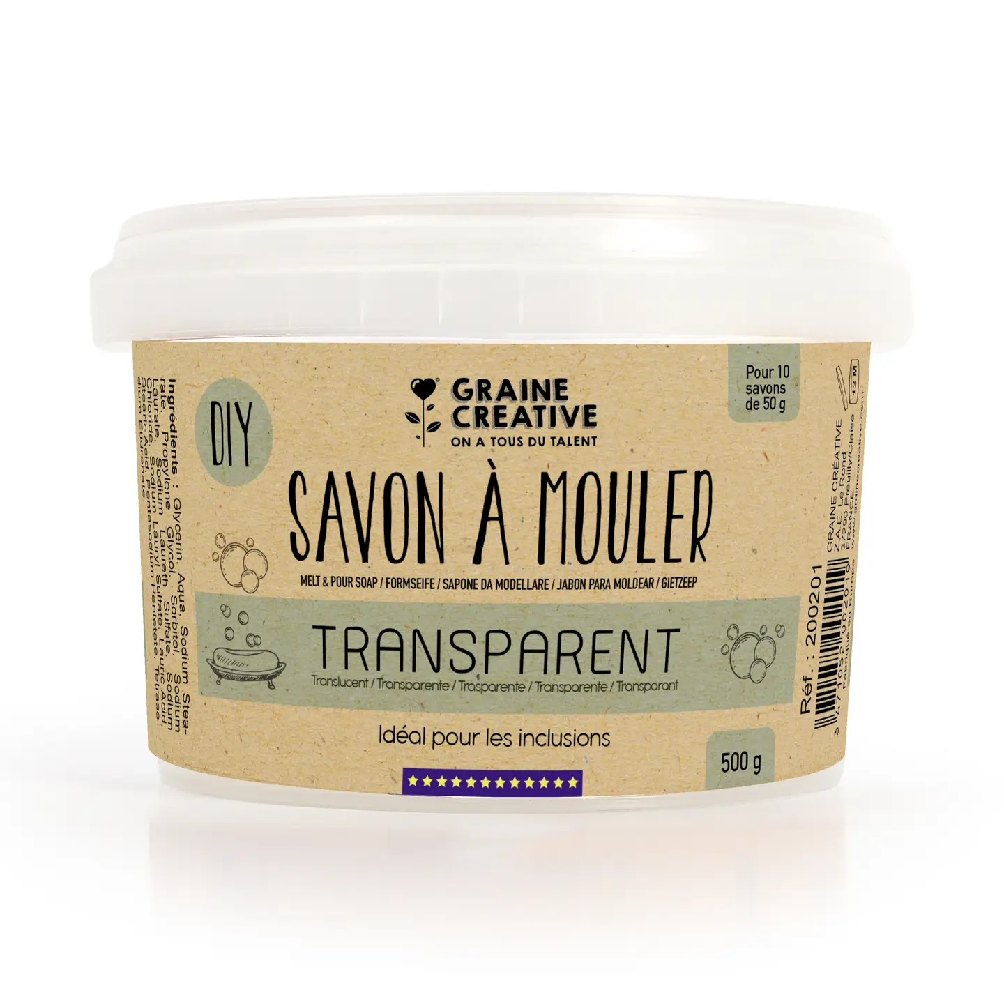 JABÓN EN BLOQUE TRANSLÚCIDO — 500 g