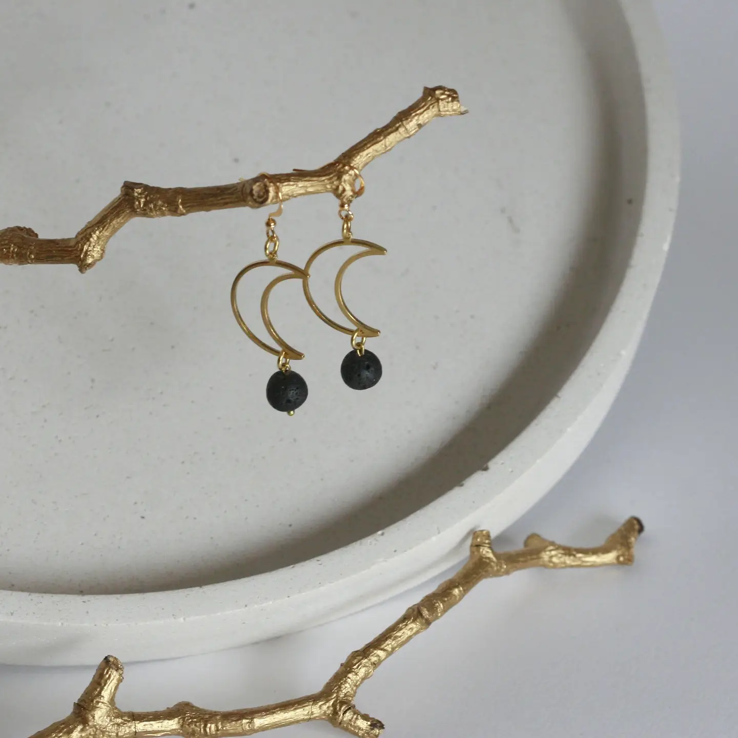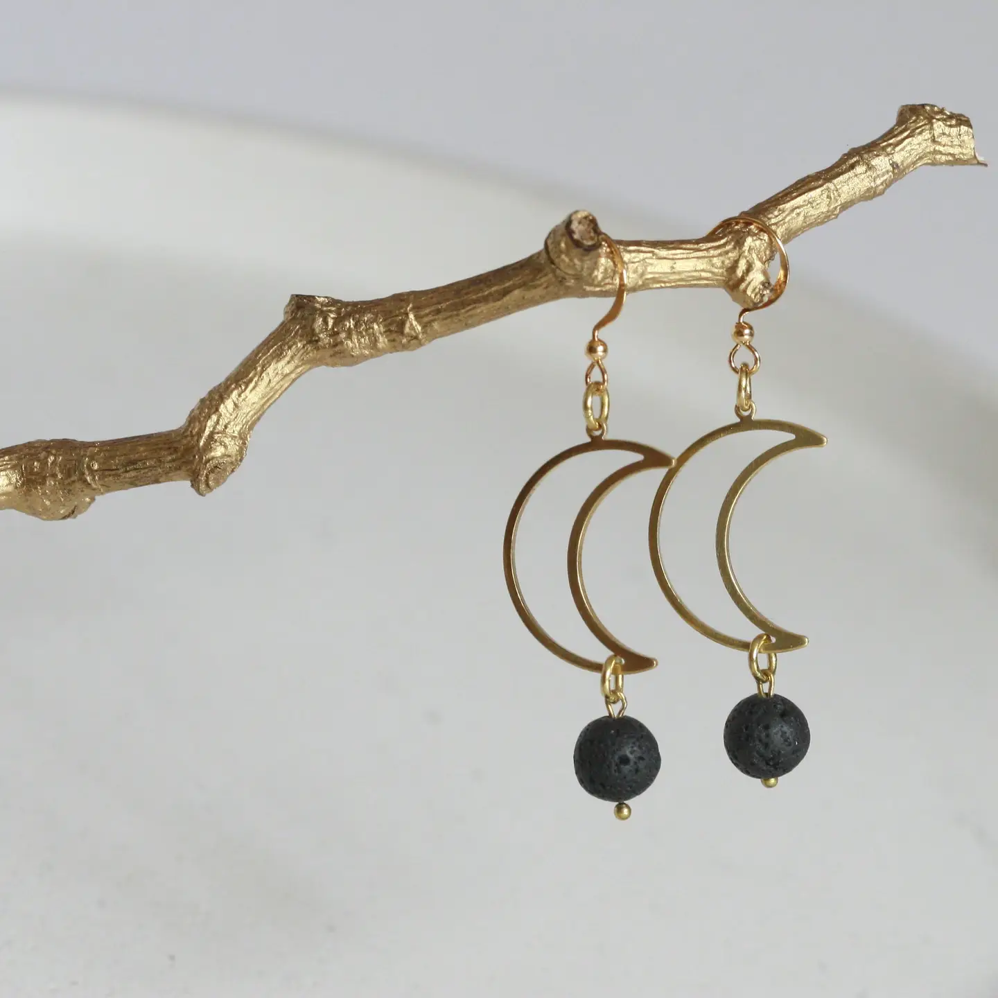 cuentas de lava natural y ganchos de latón chapado en oro.