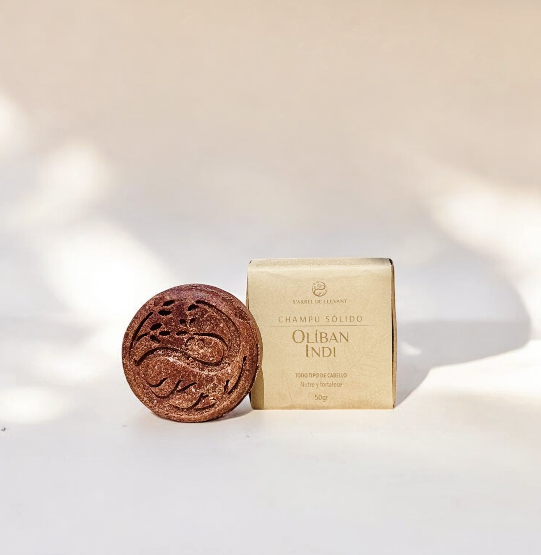 Champú sólido ayurvédico Olíban Indi: nutre, fortalece y revitaliza desde la raíz. Un auténtico ritual ayurvédico para tu cabello.